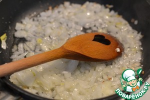 Лук мелко нарезать и обжарить на подсолнечном масле.