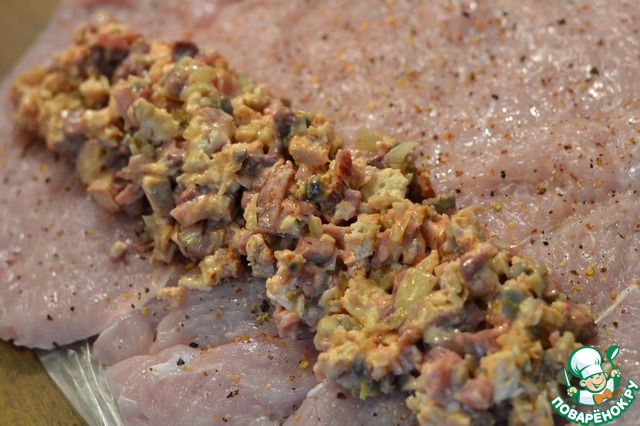 На мясо выкладываем начинку.