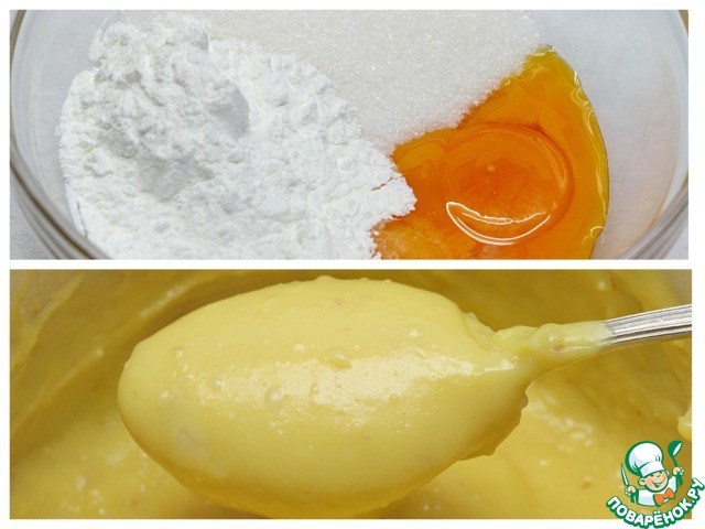 Желтки растереть с сахаром и кукурузным крахмалом. Молоко вскипятить со стручком ванили или ванильным сахаром. Половину молочной смеси добавить в яичную смесь, тщательно перемешать и вылить в кастрюлю с оставшимся молоком. Варить на среднем огне, постоянно помешивая, пока смесь не загустеет. Снять с огня и добавить цедру лимона (или лайма). Отложить в сторону до остывания. Не охлаждать в холодильнике! -