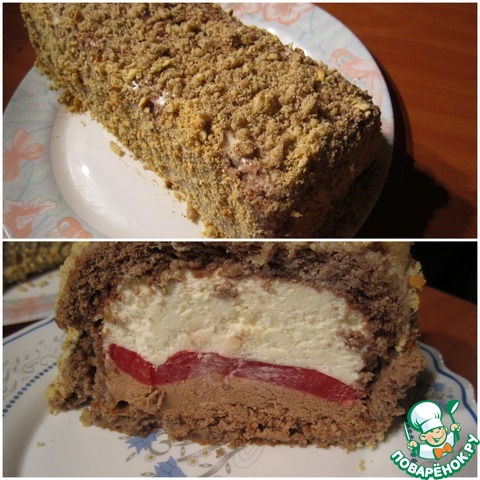 Теперь нужно вырезать из бисквита стенки/дно, боковины и "крышку". Сначала вырезаем большую часть, которая у нас пойдет на дно и стенки. Остальной бисквит пока не трогаем.