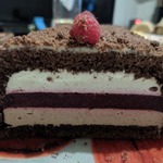 Бисквитный торт с шоколадным муссом и прослойкой малиновым конфи. Вкусно, шоколадно и празднично.