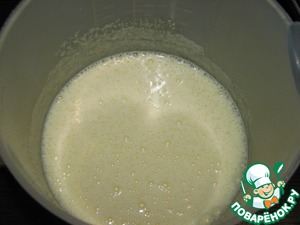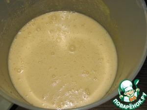 Сливочное масло растопить, остудить, добавить к яичной смеси. -