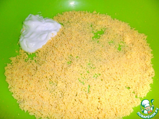 Для печенья нам нужны только вареные желтки. От вареных желтков печенье становится более нежным, хрупким и тающим во рту. Протереть их через сито, добавить сметану и тщательно перемешать.