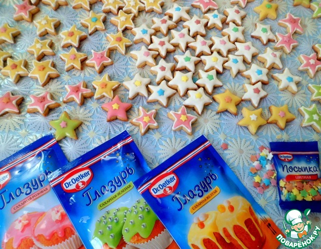 Очень вкусное песочное печенье, которое просто тает во рту. Тесто можно приготовить заранее и держать в холодильнике. А затем за полчаса у вас будет это чудесное печенье, которое вас просто покорит своим вкусом. Я делала мелкое, диаметром по 3см, их получилось 180шт. Возьмите формочки побольше, так быстрее справитесь с выпечкой. Покрываю глазурью такое печенье, только в Новогодние праздники. С готовой к работе глазурью от ТМ Dr. Oetker украсить его не стоит никакого труда.