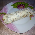 Размягченное сливочное масло (250 гр)перемешать хорошо с рубленой зеленью, любой, добавить немного соли. Маслу придать форму колбаски, переложить в фольгу и в холодильник.