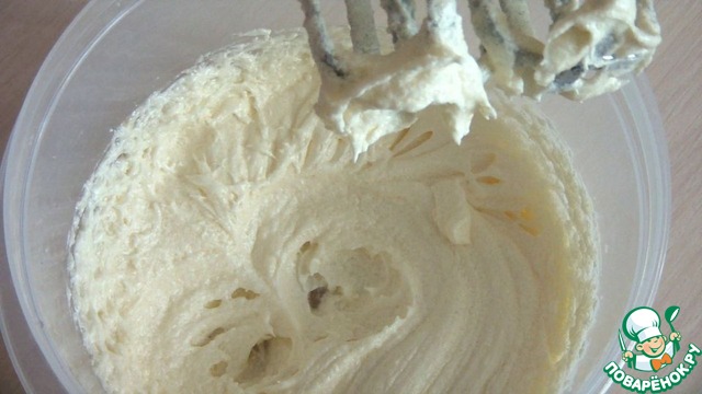 Отдельно взбиваем размягчённое сливочное масло с сахаром. По одному добавляем яйца, хорошо взбивая каждое.