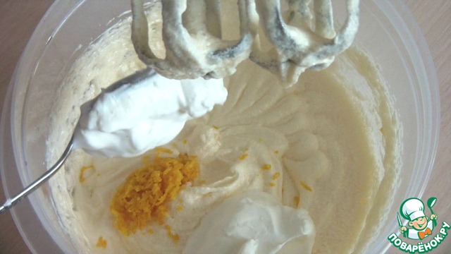 Добавляем апельсиновую цедру и сметану, взбиваем.