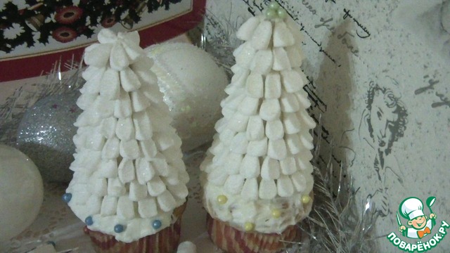 Рецепт «Кексы "Снежные ёлочки" с маршмеллоу»: