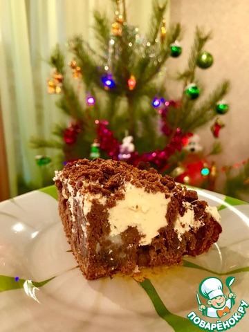 Выливаем в прямоугольную форму выстланную пергаментом и отправляем в духовку на 40-50 минут при 160 градусах. Готовность проверяем, проткнув спичкой - она должна остаться сухой.