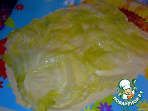 На листья выкладываем обжаренный и остывший мясной фарш.