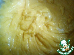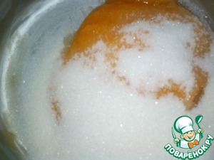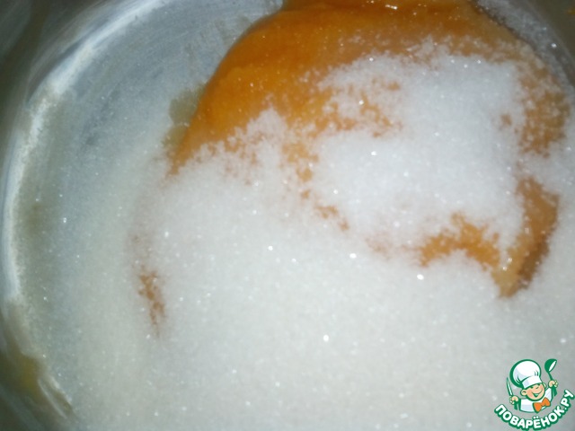 Взбить тыквенное пюре с сахаром и растительным маслом.
