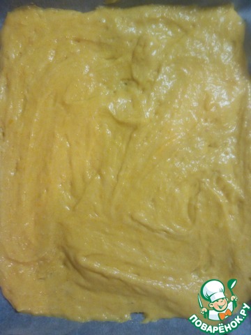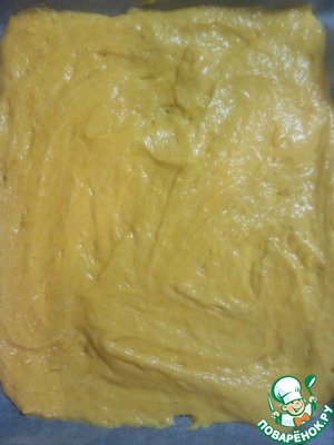 Выложить тесто на противень, смазанный растительным маслом, разровнять.