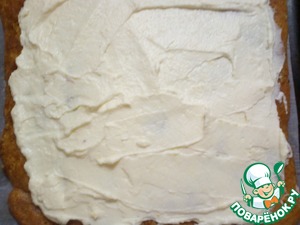 Рулет развернуть и нанести на него крем, немного отступая я боков.
