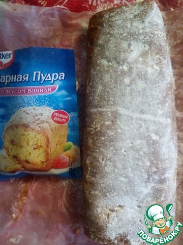Когда крем полностью застынет, освободить рулет от пергамента и украсить. В данном случае я использовала сахарную пудру со вкусом ванили ТМ "Dr.Oetcker".