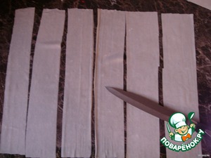 Каждый пласт,разрезать на 6 частей.(6 см.толщиной)