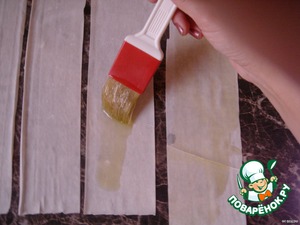 Каждый слегка смазать оливковым маслом.Верхней уголок смазать лучше.