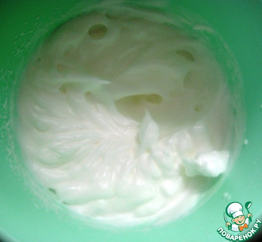 отделить белки от желтков. Взбить белки со щепоткой соли до устойчивых пиков.