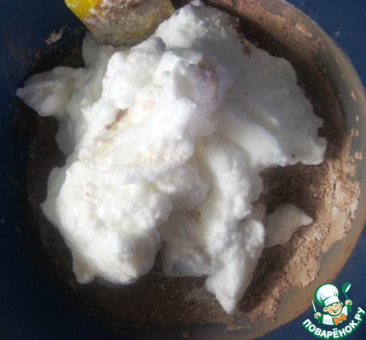 Аккуратно ввести белки, чтобы получилось однородное тесто.