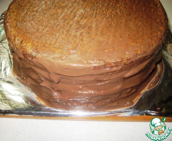 Собираем торт, чередуя коржи и щедро промазывая их заварным кремом.
