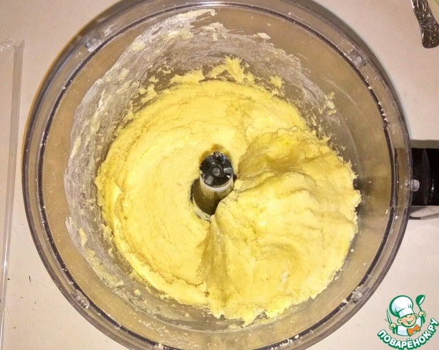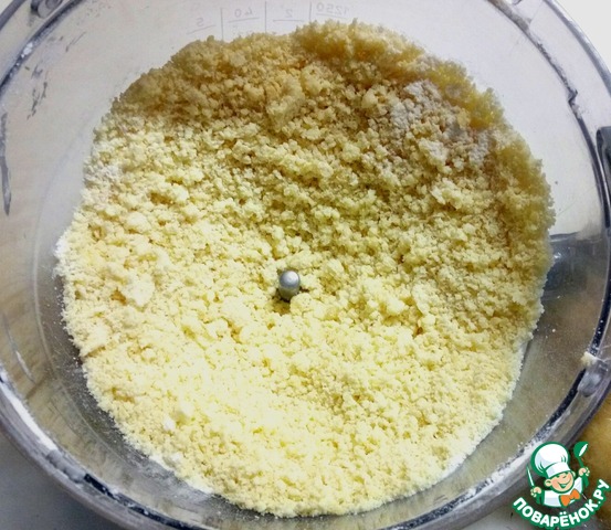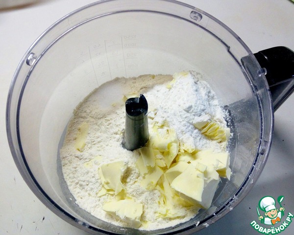 В блендере или комбайне смешать муку, соль, разрыхлитель и сливочное масло до состояния крошки (можно перетереть руками). Если используете технику, масло лучше брать холодное.