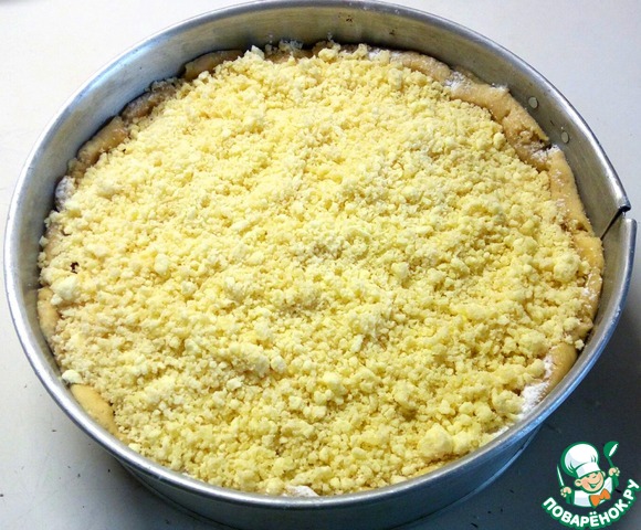 Сверху на ягоды выложить штрейзель, разровнять.