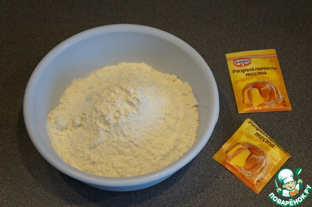 Отдельно смешайте муку, разрыхлитель, ванилин и соль.