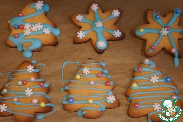 Как из песочного печенья сделать праздничное лакомство? Нужно взять проверенный рецепт, добавить немного фантазии и за полчаса получится нарядное угощение! Хорошо когда есть готовые кондитерские посыпки и глазурь, с ними готовка выходит легче, а печенье аккуратнее и красивей.
