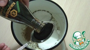 Приготовим маринад: для этого в кастрюльке соединим специи, соль, соевый соус (лёгкий соус ТМ Kikkoman).