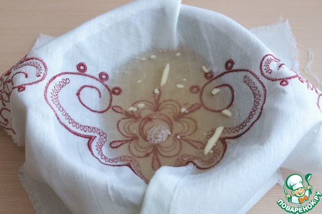 Бульон процедить через плотную льняную или бязевую ткань. Весь собравшийся жир останется на поверхности ткани.