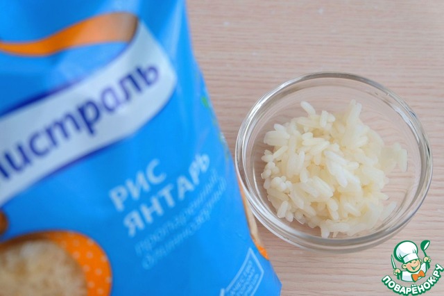 Рис "Янтарь" пропаренный ТМ "Мистраль" (1 ст. ложка) отварить до состояния Al dente, затем промыть холодной водой, слегка обсушить.
