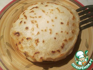 Пока поднимается тесто напечь блинчиков. Смешать муку с солью, разрыхлителем, и сахаром. Влить газированную воду, размешать до однородности. Добавить растительное масло и дать тесту постоять 30 минут. Затем испечь блинчики.