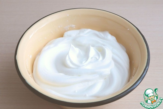 Отделить яичные белки (3 шт.) от желтков. Взбить белки в легкую пену.