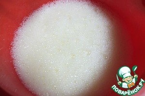 Яйца взбиваем до увеличения в объеме. Продолжая взбивать, добавляем воду и растительное масло.