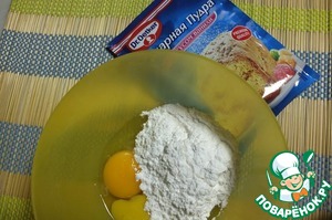 В емкости соединяем желтки, уксус и и половину сахарной пудры. Взбиваем миксером, постепенно подсыпая сахарную пудру. "Тесто" должно получится густым и тягучим.