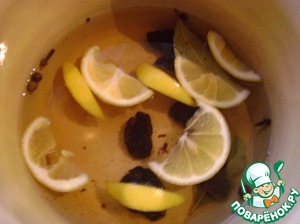 В сотейник налить воду, добавить специи, нарезанный чернослив, дольки лимона. Довести до кипения, прокипятить 5-7 минут и дать полностью остыть.