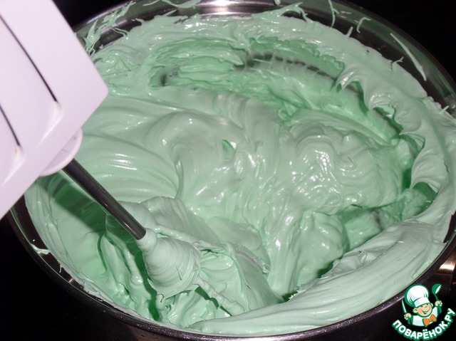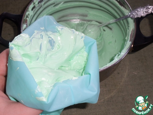 Добавляем пищевой гелевый краситель зеленого цвета.