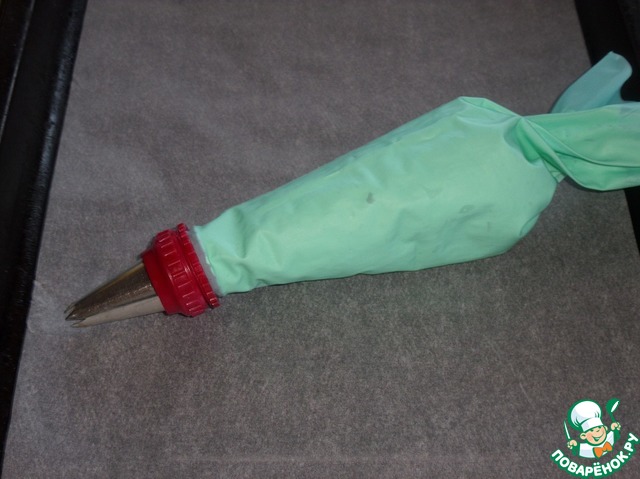 Наполняем белковой массой кондитерский мешок с насадкой "открытая звезда".
