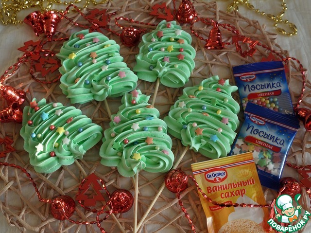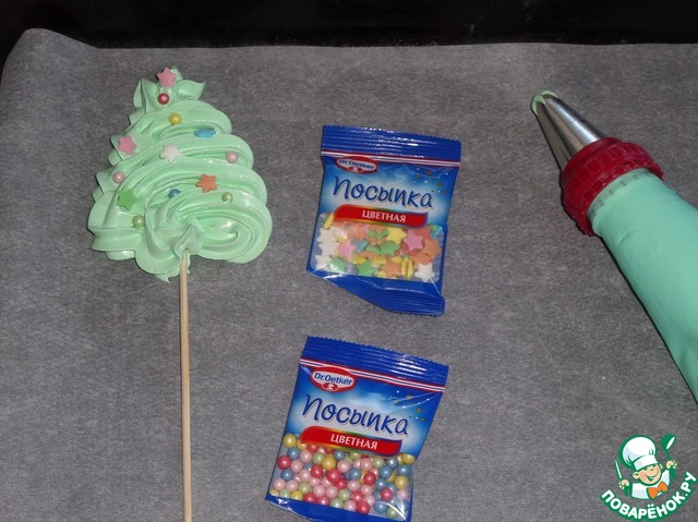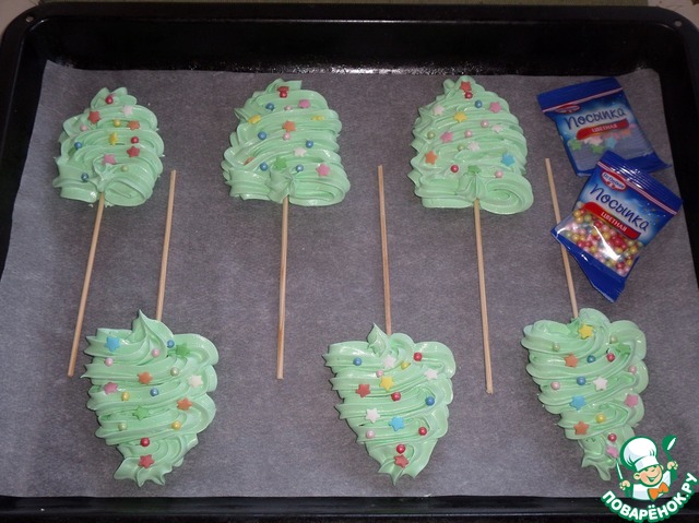 Рецепт «Безе на палочке "Новогодние ёлочки"»: