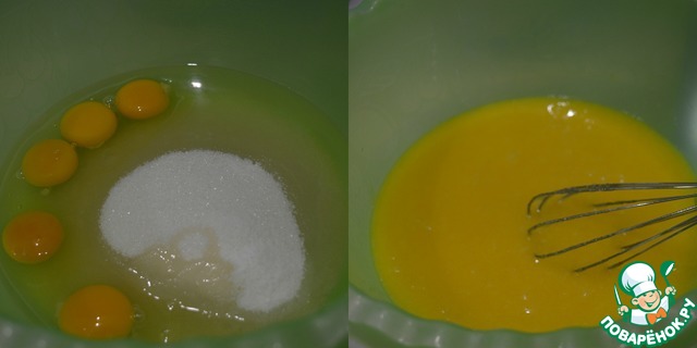 Отдельно смешать яйца, сахар, растительное масло и ванилин.