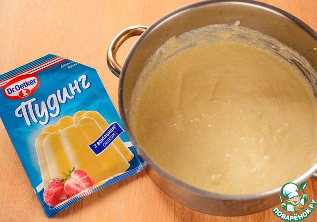 Ванильный пудинг тщательно перемешиваем с сахаром (так он никогда не образует комков).