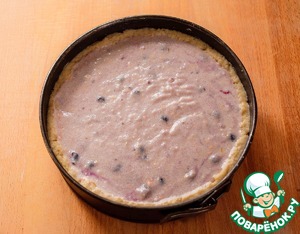 Дно песочного коржа слегка накалываем вилкой. Выливаем начинку.