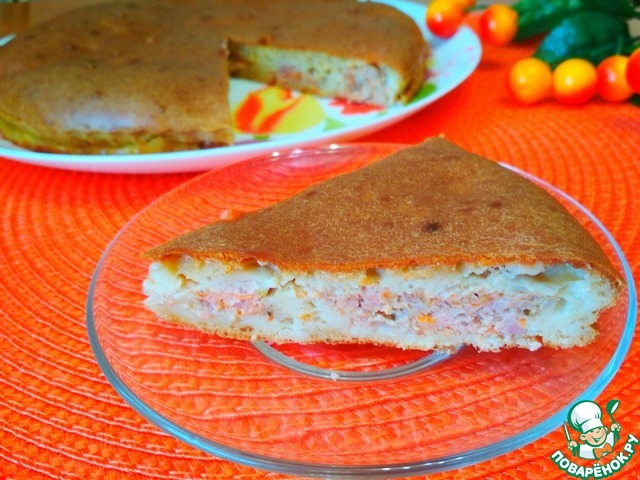 После приготовления фаршированных перцев искала рецепт, чтобы быстро и легко задействовать остатки фарша и нашла Ваш рецепт! Спасибо! Теперь готовлю постоянно. Сверху украсила жёлтыми помидорами, плюс это добавило пирогу небольшую свежесть и ещё большую легкость.