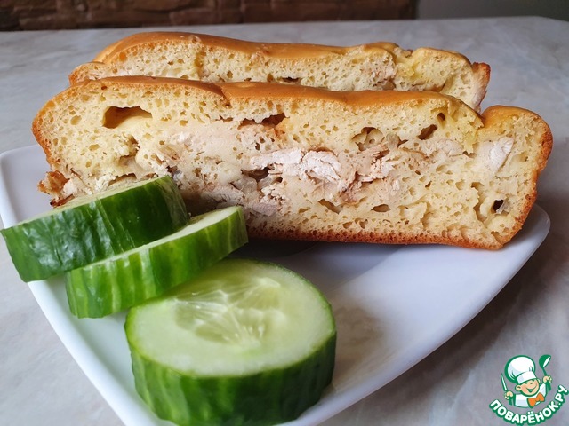Форму для запекания смазать растительным маслом. Разделить тесто примерно на 2 части, вылить в форму сначала 1 часть. Далее выложить фарш, я делаю плоские блинчики из фарша и выкладываю на тесто, далее фарш заливаю оставшимся тестом.