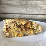 [+5]Оооочень понравилось когда встречались апельсиновые шкурки , прям как цукаты . Тесто поднялось в половину высоты . Пирог вышел достаточно тяжелым , влажным , но в то же время воздушным на зуб и лёгким в еде
