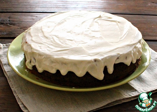Приготовленный крем распределяем по поверхности остывшего пирога и разравниваем ложкой. Пирог посыпаем сухим маком, но можно декорировать любой посыпкой Dr. Oetker.