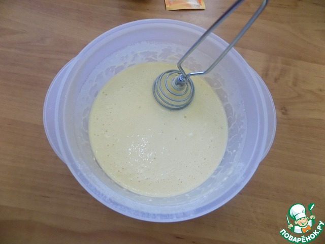 Всё хорошо венчиком соединяем, немного подвзбивая.