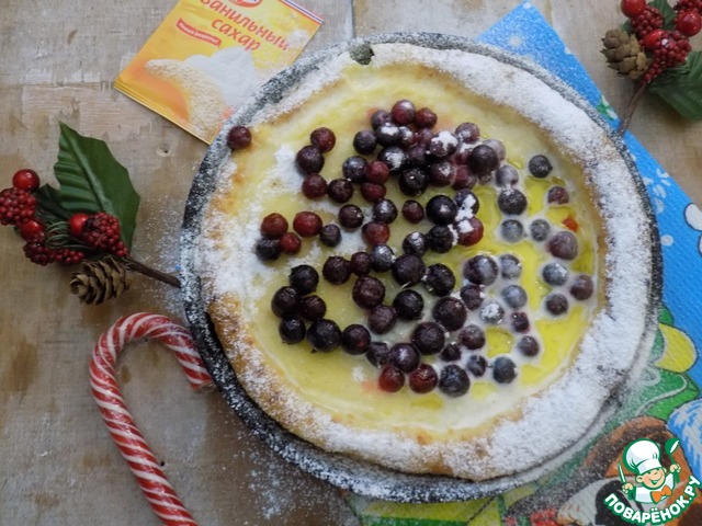 Датские блинчики отличаются тем, что пекутся не на сковороде, а в духовке. Хотя у меня на сковороде, но в духовке. Можно взять форму подходящую. Подаются к столу с ягодами, сливками и сахарной пудрой. Больше напоминает пудинг. Это очень вкусный десерт и простой в исполнении.