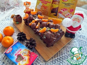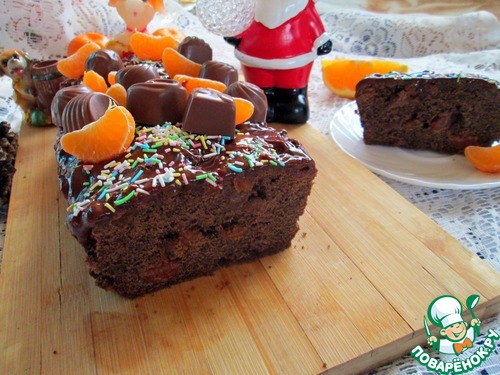 Шоколад растопить на водяной бане и полить кекс. Посыпать цветной посыпкой и украсить по желанию. Я украсила дольками мандарина и конфетами.