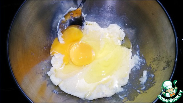 Далее вмешиваем яйца и желток.