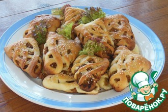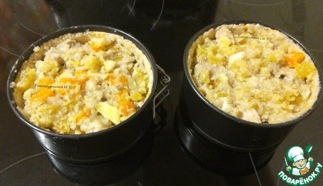 10. Ставим пироги в духовку минут на 30-40. Зависит от сочности вашей начинки. Минут за 15 до конца выпечки, смазать верх пирога желтком, разбавленным капелькой воды.